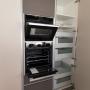 Spülenunterschrank mit Blanco Select Abfallsystem, 1 Unterschrank mit Innenauszug, 1 Vorratsschrank mit Innenschubkästen und Innenauszügen, 1 Hochschrank für erhöhten Einbau von einem NEFF Backofen und NEFF Dampfgarer, 1